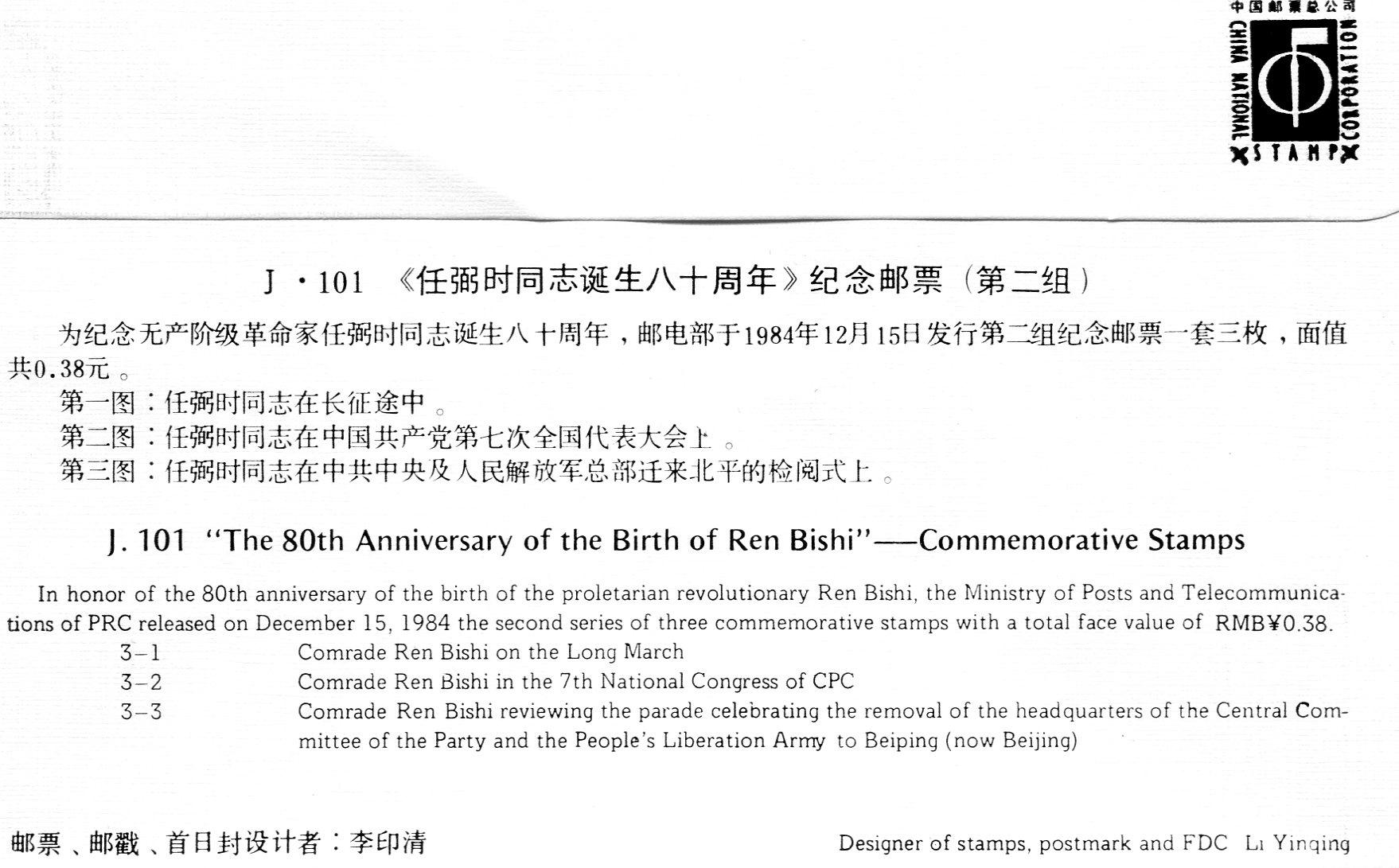 J 101 "Ren Bon's Gay Birth 80 Anniversary" Commemorates the Stamp First Day Covers