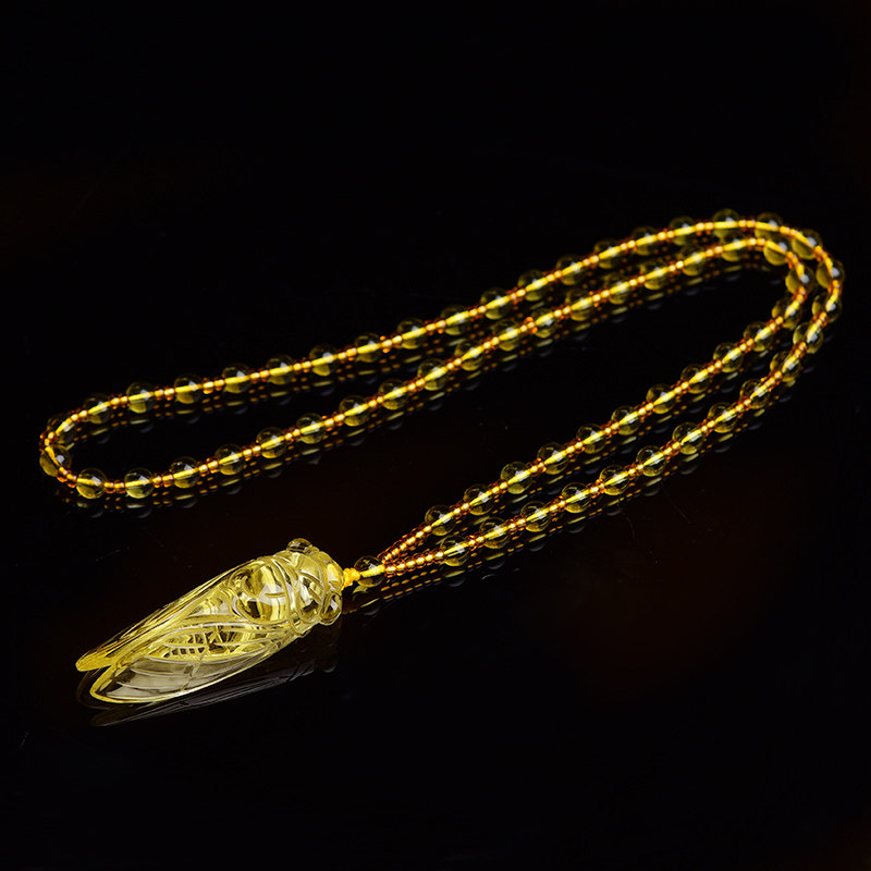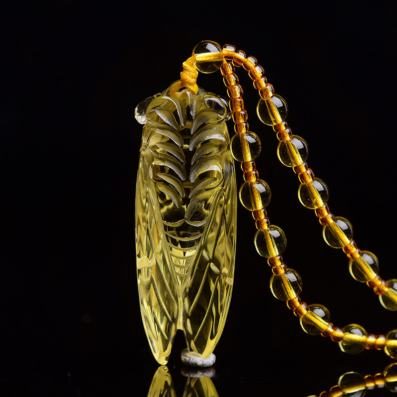 Natural yellow crystal handmade golden cicadas with golden cicadas pendant male and female Birthday Gift Woolen Clothing Chain Couple-Taobao