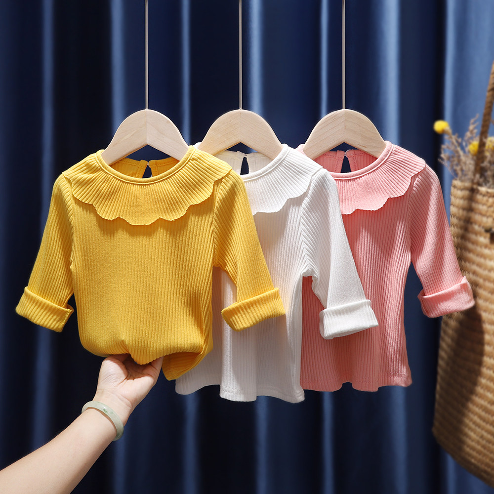 Baby girl bottoming shirt baby bottoming T-shirt girls tops spring and autumn doll collar white children's foreign style inner wear autumn