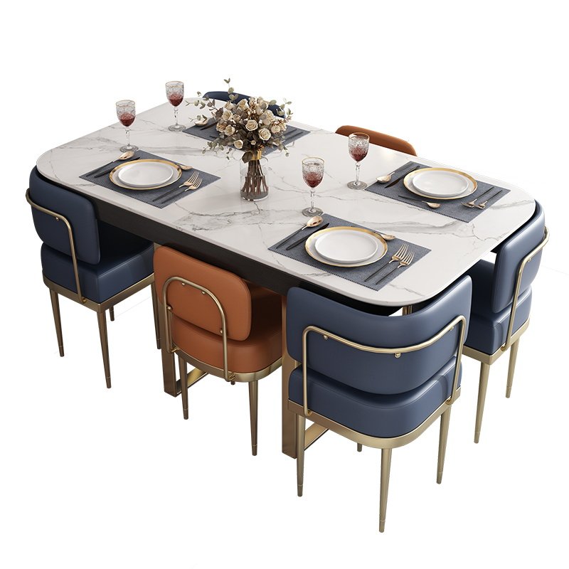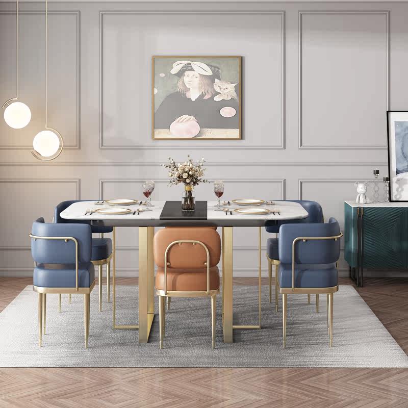 Nordic light luxury small apartment retractable rock slab dining table and chair combination home modern minimalist multi-functional rock slab dining table