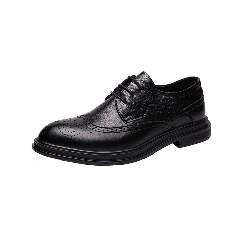 Bullock Men's Shoes Sculpture Flowers Korean version Trend Inlenty Wind retro Pointed Interior Heightening Casual Business Hairstylist Leather Shoes