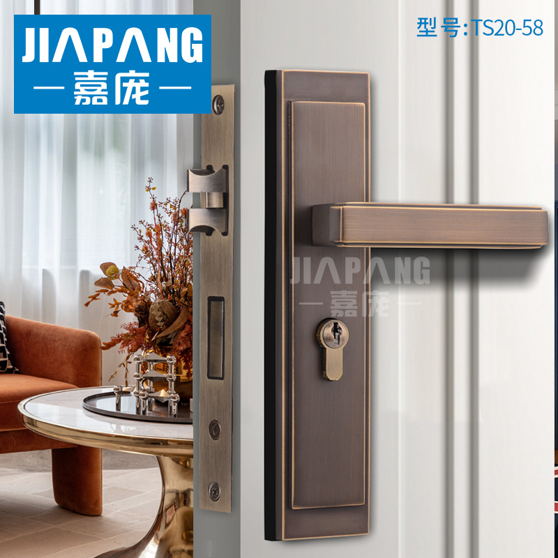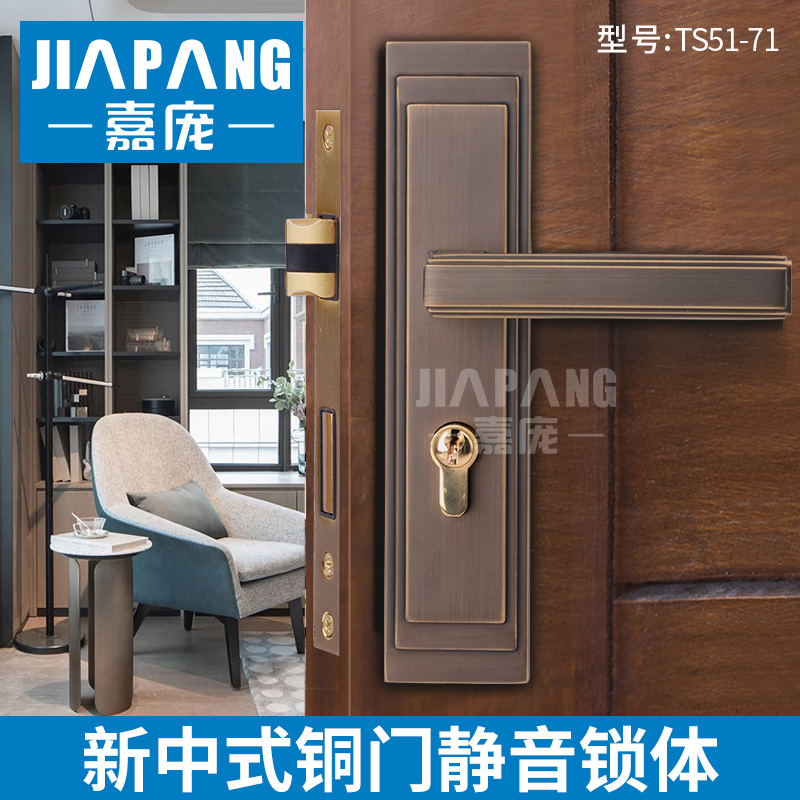 Jia Pang copper lock copper lock coffee indoor door lock mute to open the door antique wood door handle new Chinese style