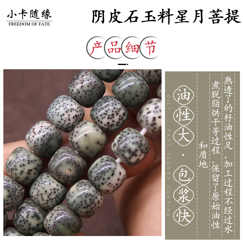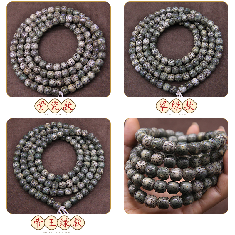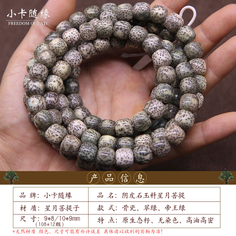 Original eco-stone jade material Star moon Bodhi Handstring 108 Hainan Yin green leather Zhengyue High Mixing Single Circle Handmade to Play
