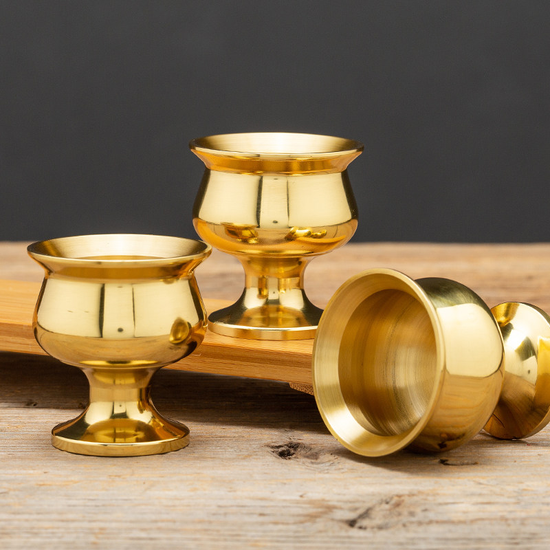 Light body brass wine cup sacrifice small wine cup dedicated to the God of Wealth household worship God tea cup small wine cup pure copper worship Buddha cup