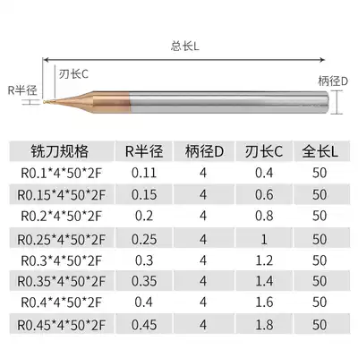 Blade diameter*Blade length*Shank diameter*Total length*Number of blades Φ0 2*0 4L*4D*50L*2F Flat knife Φ0 3*0 6L*4D*50L*2F Flat knife