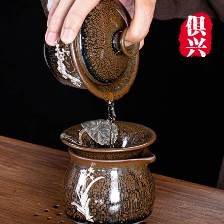 Upscale kilns to build a tea set set for home office iron tyre cream drop inlaid silver tea tea teapot gift box packaging