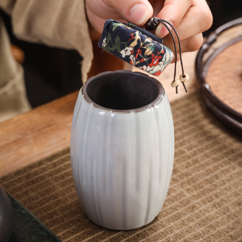 Ceramic tea pot kiln becomes retro storage pot portable vertical rough pottery Pu'er tea sealed pot tea set accessories household