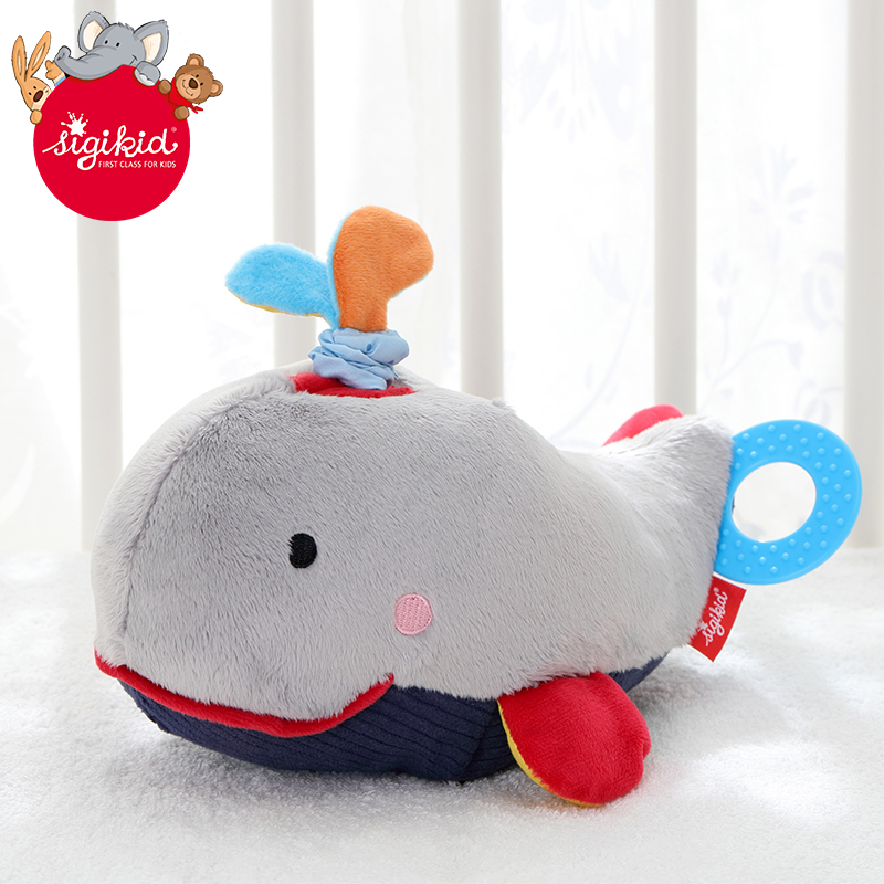 German sigikid baby whale plush toy can vibrate and grasp educational colorful appease rattle doll