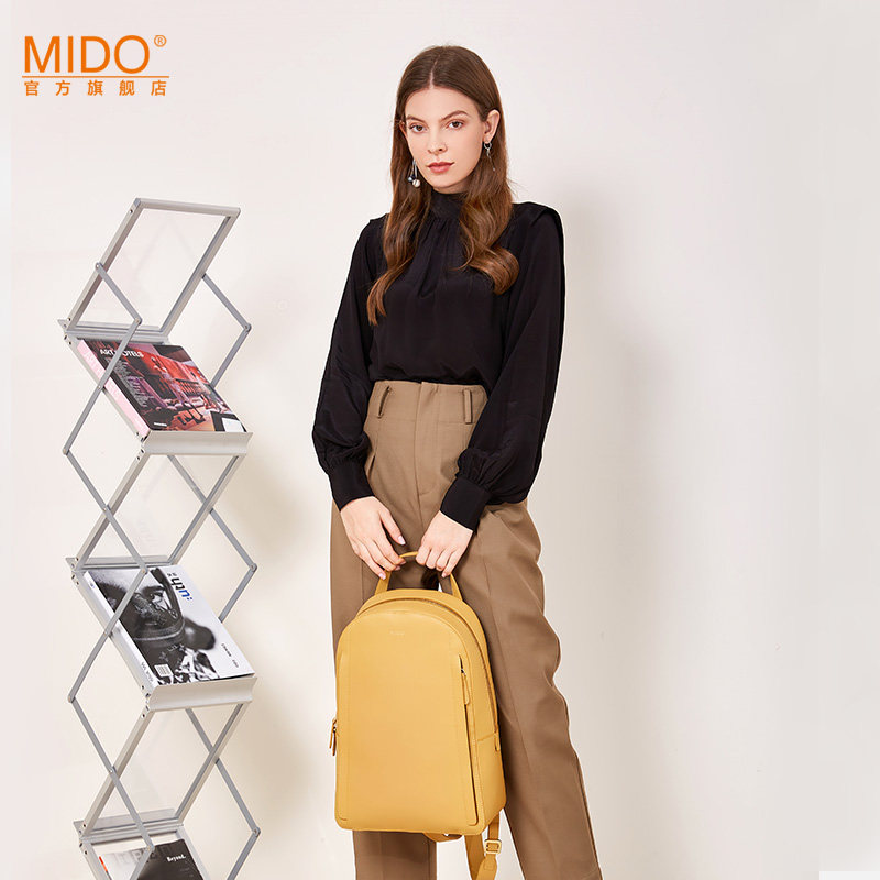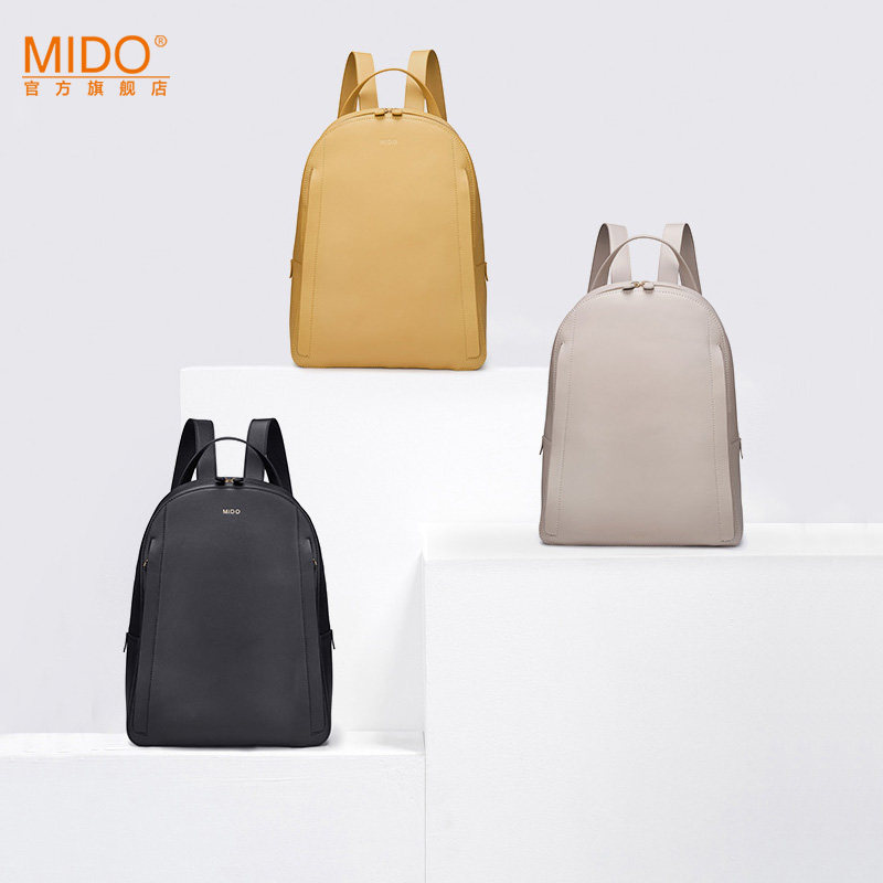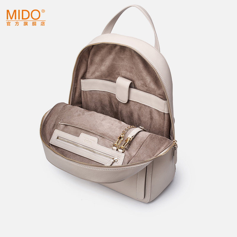MIDO leather backpack ladies new cowhide simple solid color backpack soft leather large capacity leisure travel bag