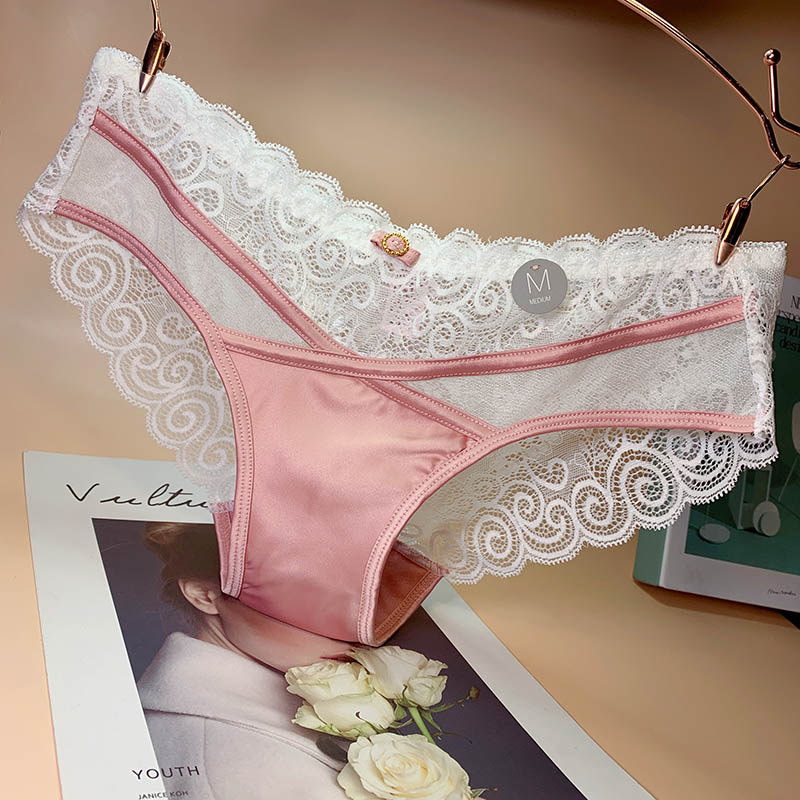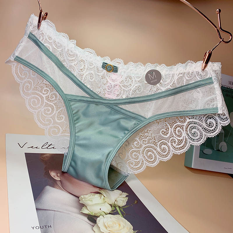 emwz European and American court lace panties women's mid-waist sexy satin fabric comfortable cotton crotch triangle safety pant