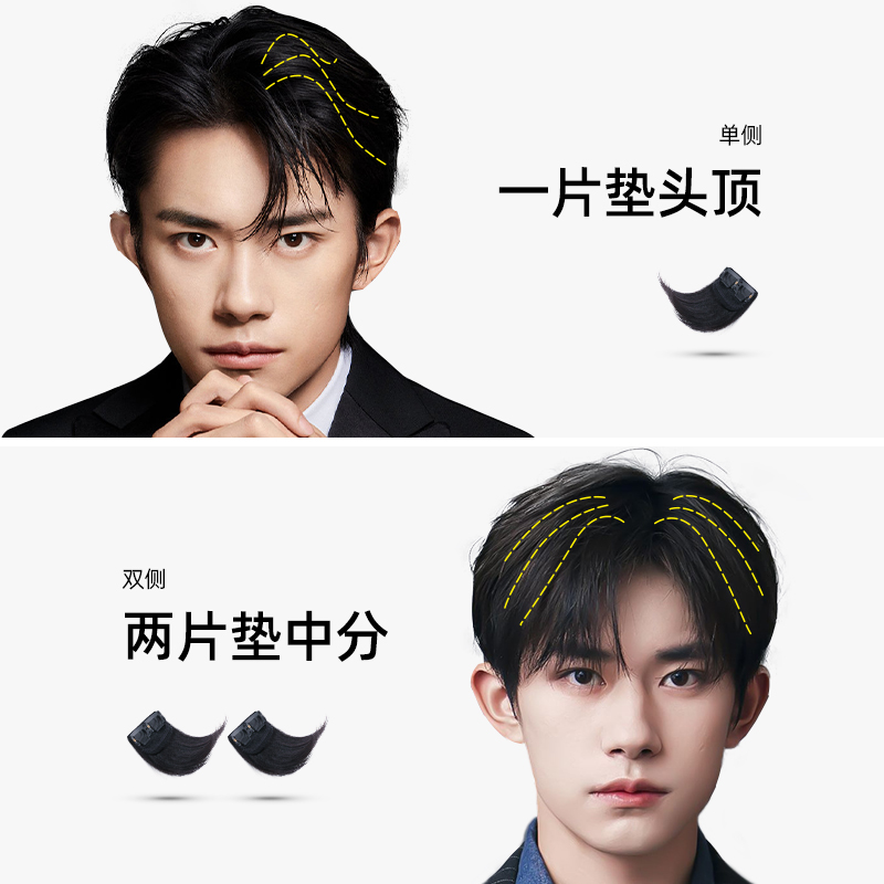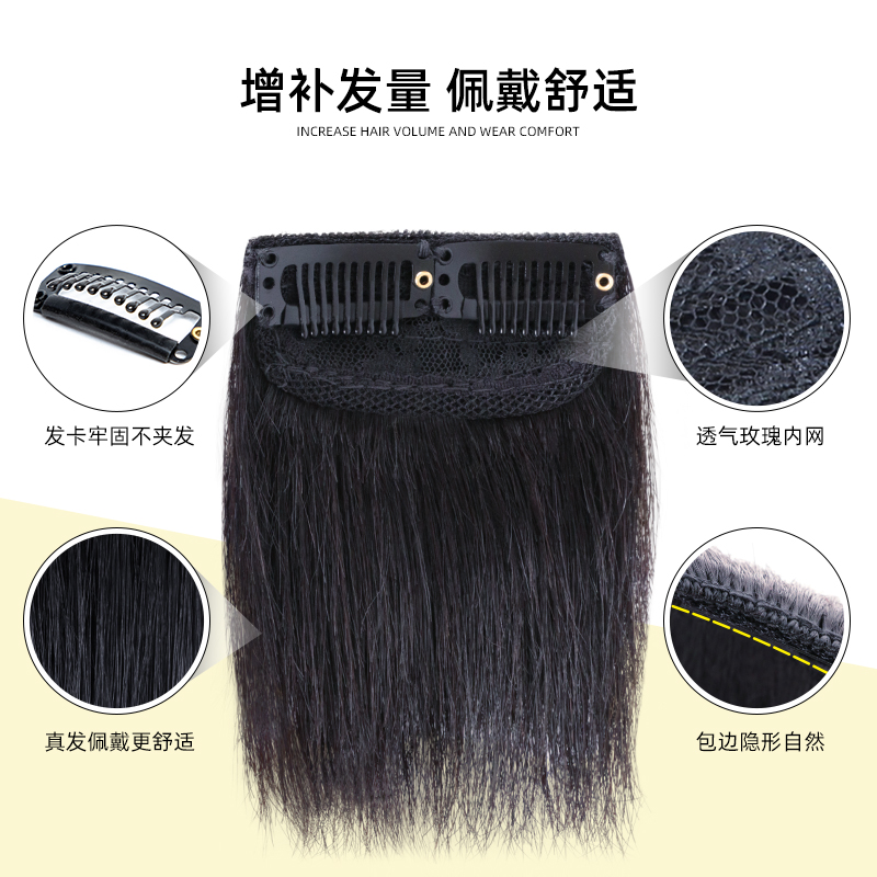 Men's cushion wig piece piece invisible traceless wig patch real hair pad hair root fluffy overhead refill