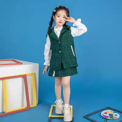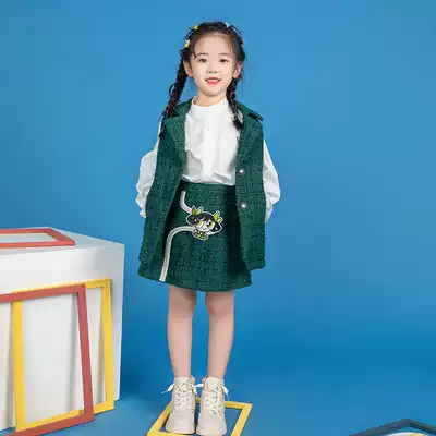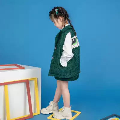 Original girl print sleeveless jacket 2021 autumn new foreign pie sparkling children's vest coat coat top