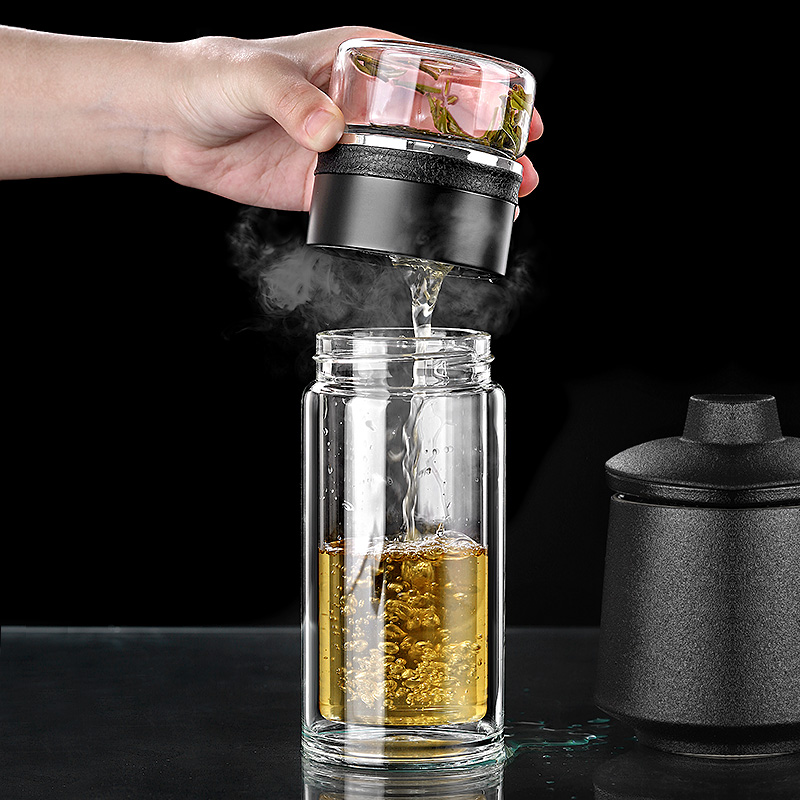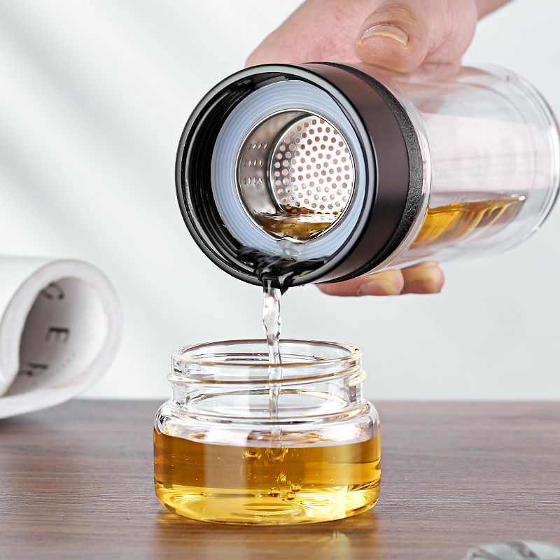 Double-layer tea separation glass water cup insulation cup with filter tea personal special summer tea cup men