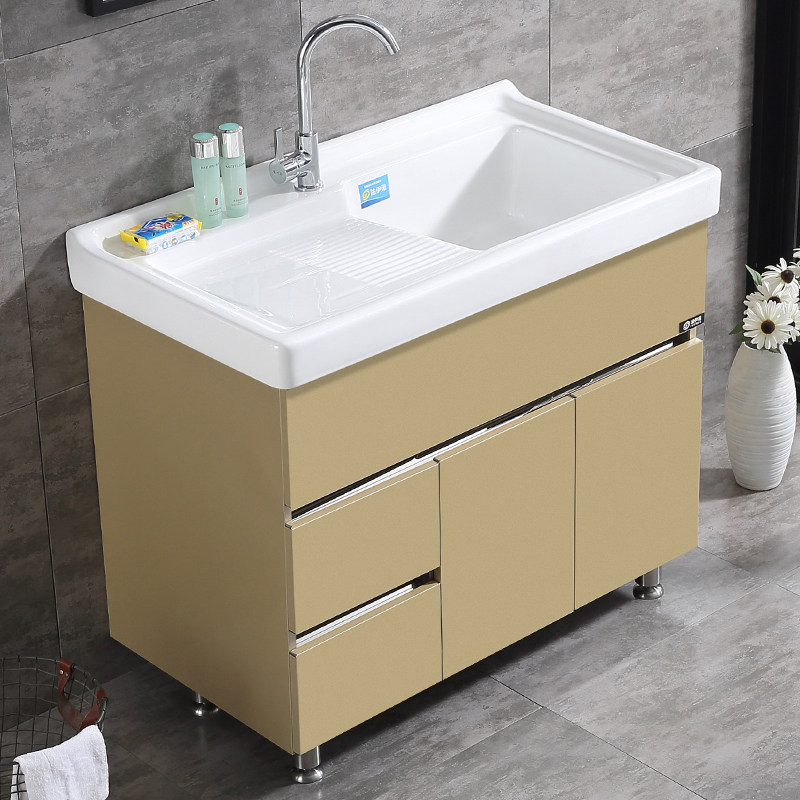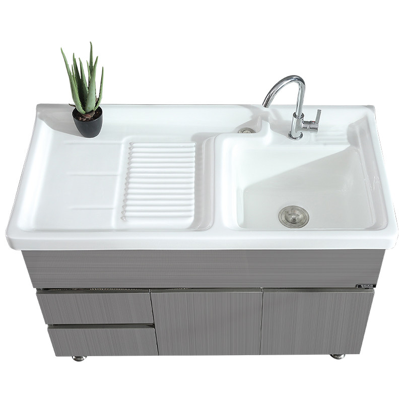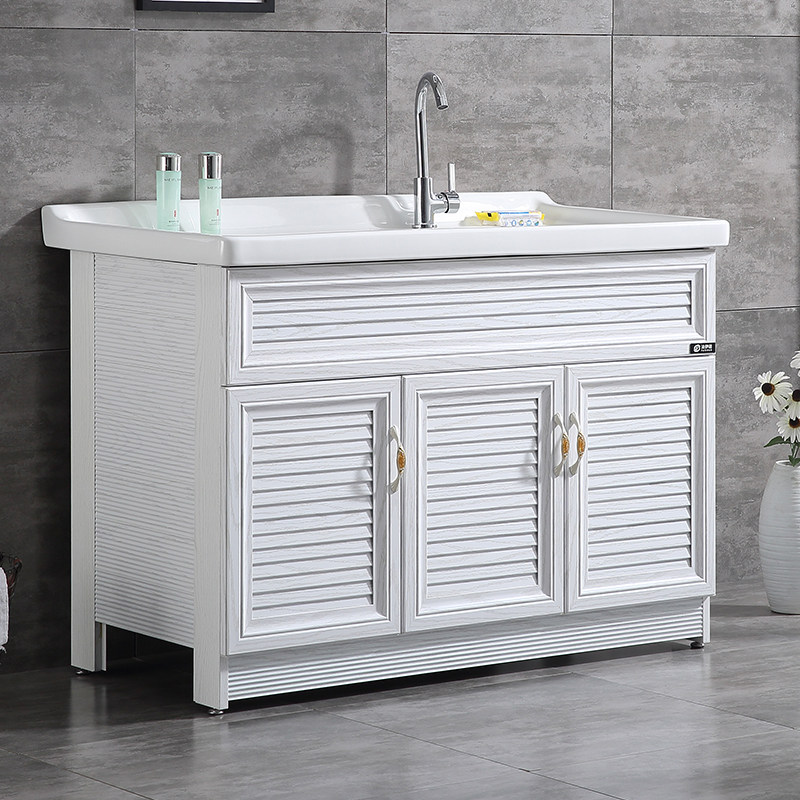 Stainless Steel Laundry Cabinet High Temperature Ceramic Laundry Pool With Washboard Space Aluminum Bath Cabinet Balcony Cabinet price Custom