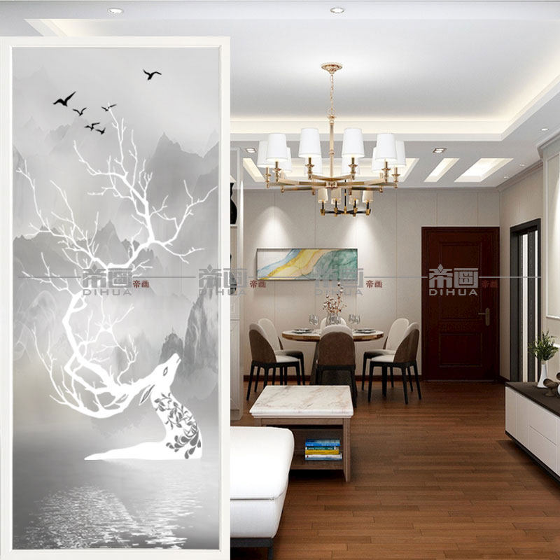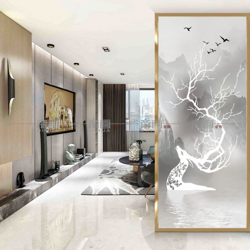 Changhong art glass living room screen partition Home decoration frosted carved translucent tempered entrance TV 3d background wall