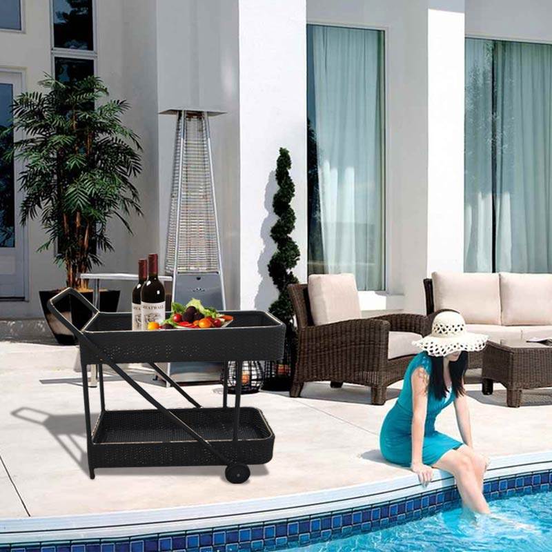 Rattan woven dining cart hotel western restaurant liquor cart cart outdoor restaurant garden courtyard sideboard trolley