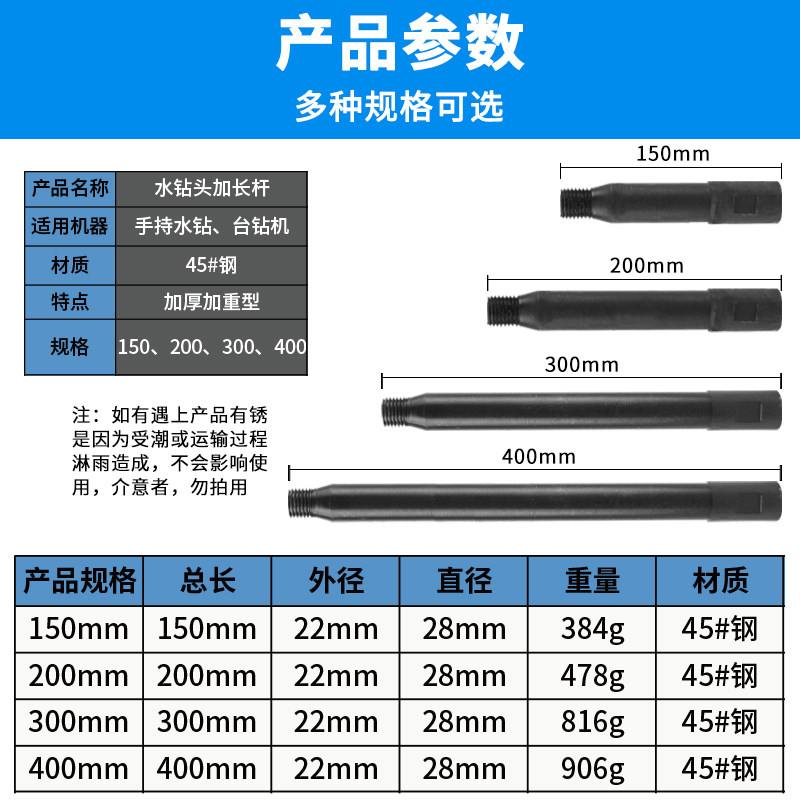 160mm 200mm 220mm 300mm 400mm 400mm-piece rotary water drill (square handle) Two-piece transfer water drill (round handle) integrated into the water drill (square handle)