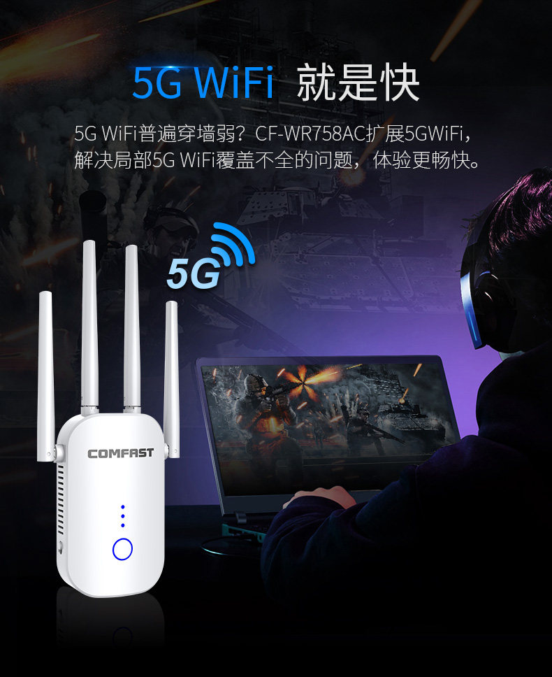 1200M 1200M dual frequency 5G one thousand trillion WiFi signal extender wifi signal intensifier wife signal intensifier wireless network high-power wearing wall king high speed reception extended extension repeaters