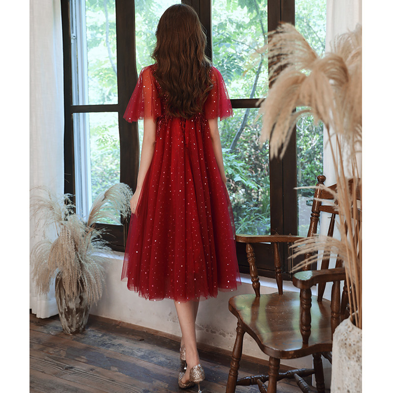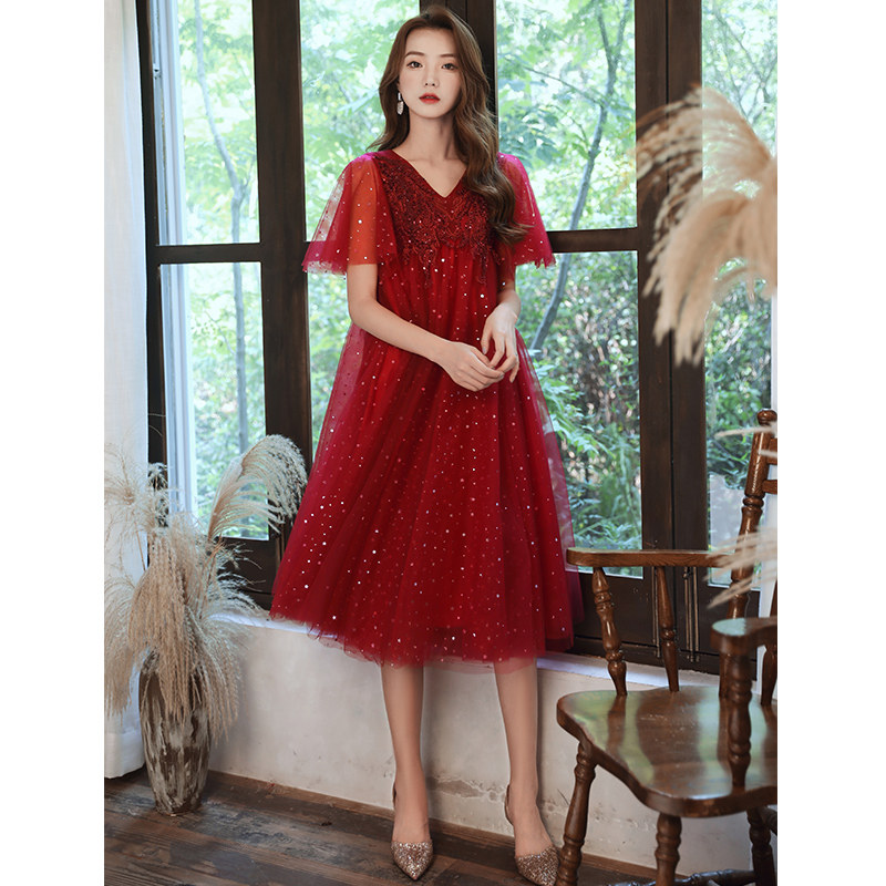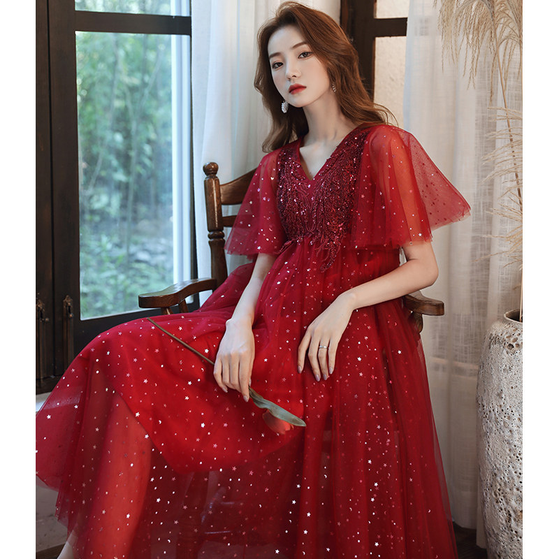 Large size toast dress bride senior sense of wine red wedding dress woman can usually wear pregnant women high waist to cover the belly in summer