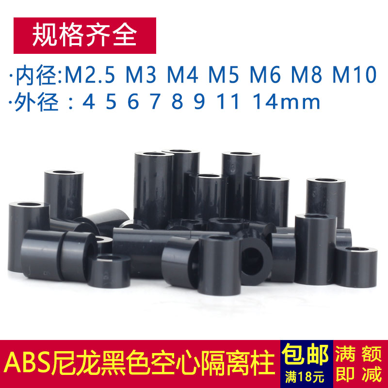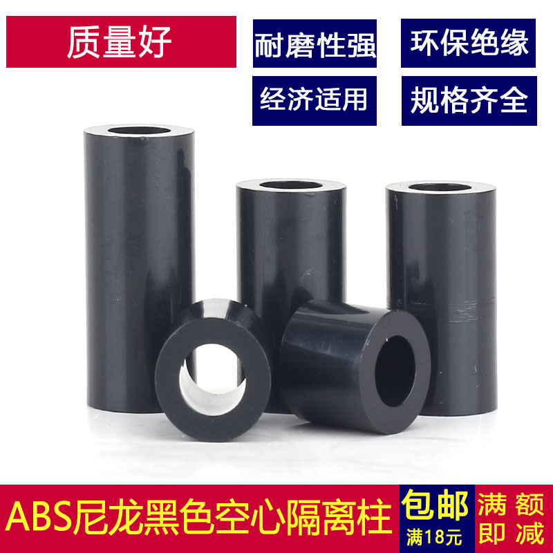 M2 5M3M4M5M6M8 Black ABS Isolation Column Plastic Sleeve Nylon Support Column Hollow Cylindrical Round Pad