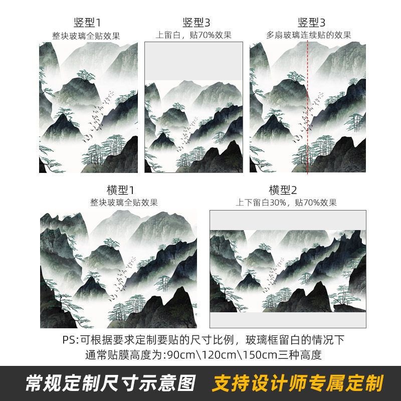 Atmospheric new Chinese landscape painting film office restaurant hotel decoration anti-peep static glass sticker custom