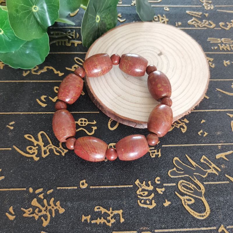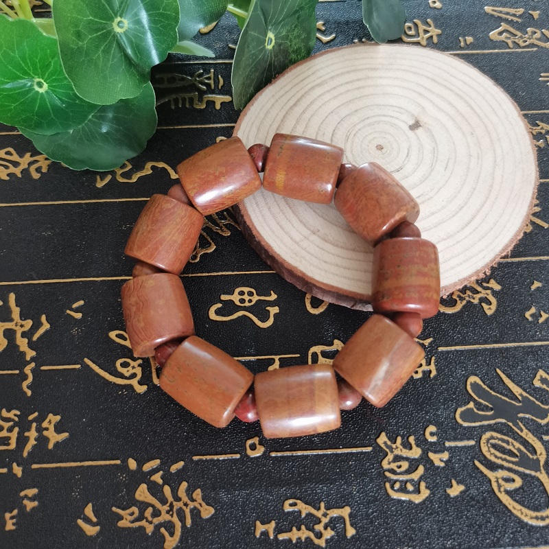 Natural Sibin Bian Stone Bracelet Shandong Sishui Fugui Red Bian Stone Bracelet Men and Women's Health and Health Alum Stone