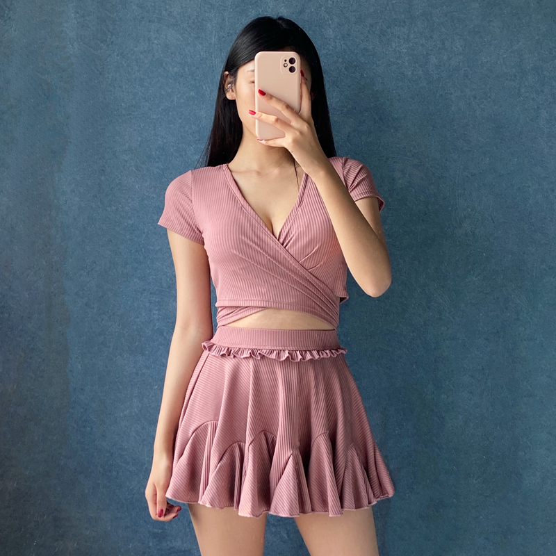 Swimsuit women Summer 2021 new cover slim conservative South Korea Ins Wind student Two style dress sexy fairy Fan