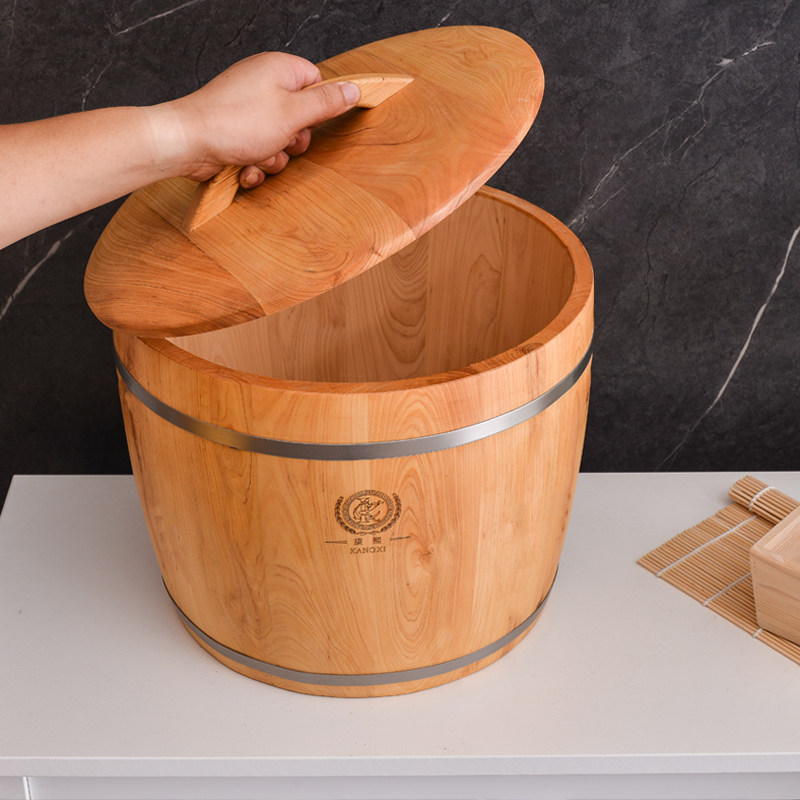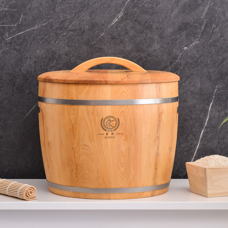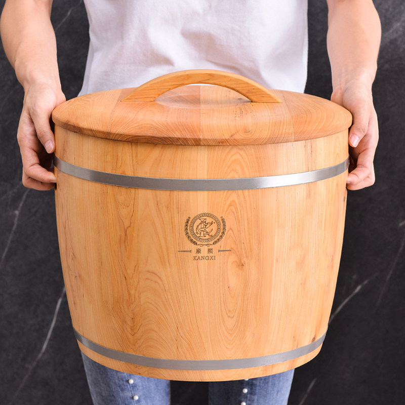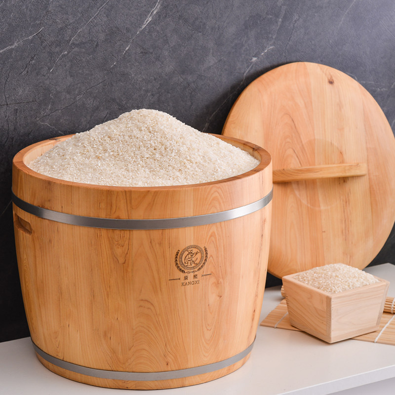 Solid wood rice barrel insect-proof moisture-proof sealed 20 kg rice cylinder box noodle barrel rice flour storage tank household rice storage box