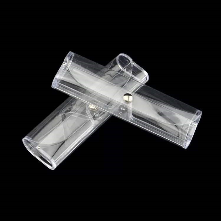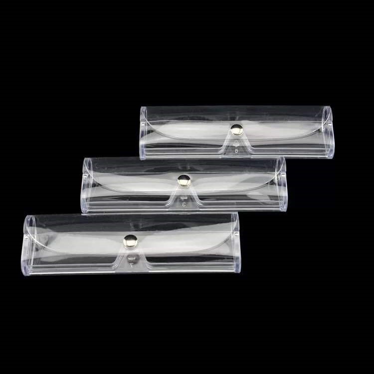 Take 1 round of 3 light portable PVE glasses box anti - wrestling anti - pressure old vision lens box transparent plastic with button old glasses box