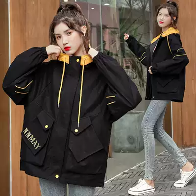 Pregnant women coat spring and autumn 2021 New Korean version of loose large size coat belly wearing short version of trench coat tide during pregnancy