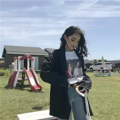 2021 Korean version of loose suit jacket casual retro design sense Hong Kong style chic spring and autumn suit jacket women