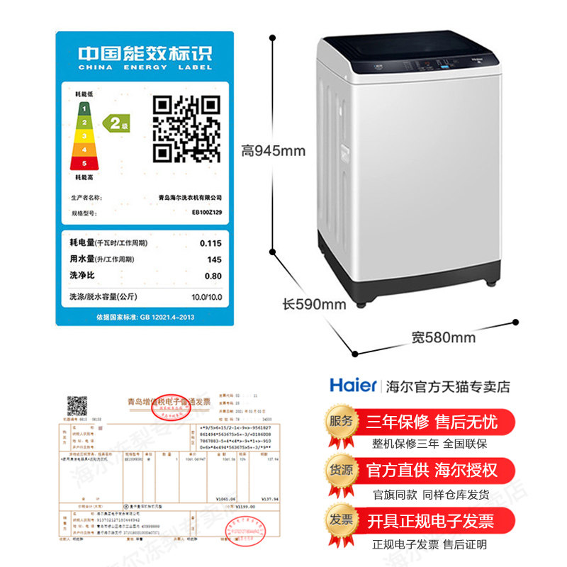 Haier washing machine 10 kg kg automatic household wave wheel large capacity Prodigy official flagship store official website Z129