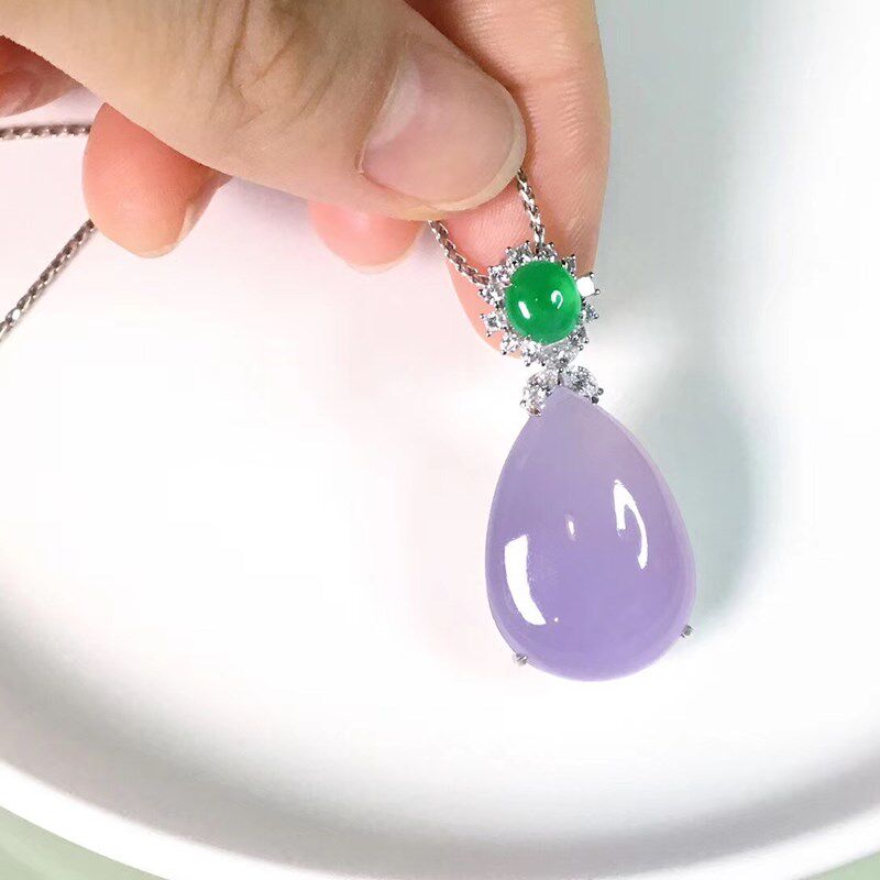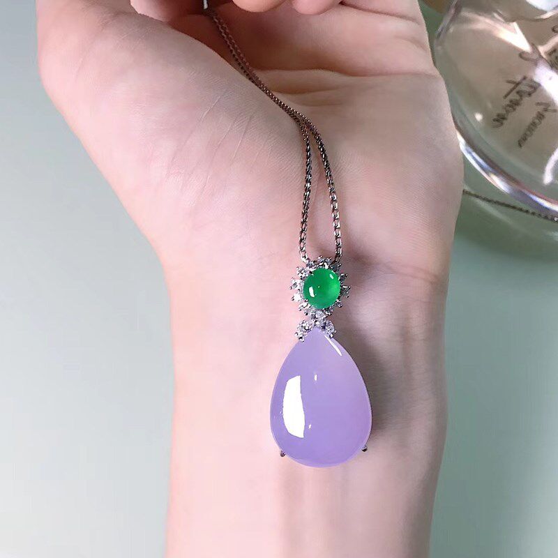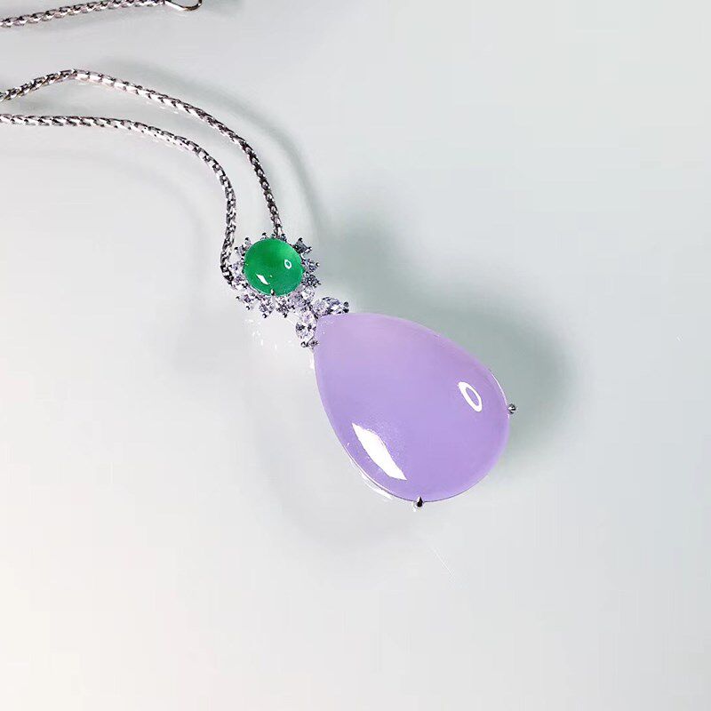 Revealed Yang Beauty Jade All Naughty Jade Cabinet Natural Emerald Myanmar A Goods High Ice Violet 18K Inlaid Pendant
