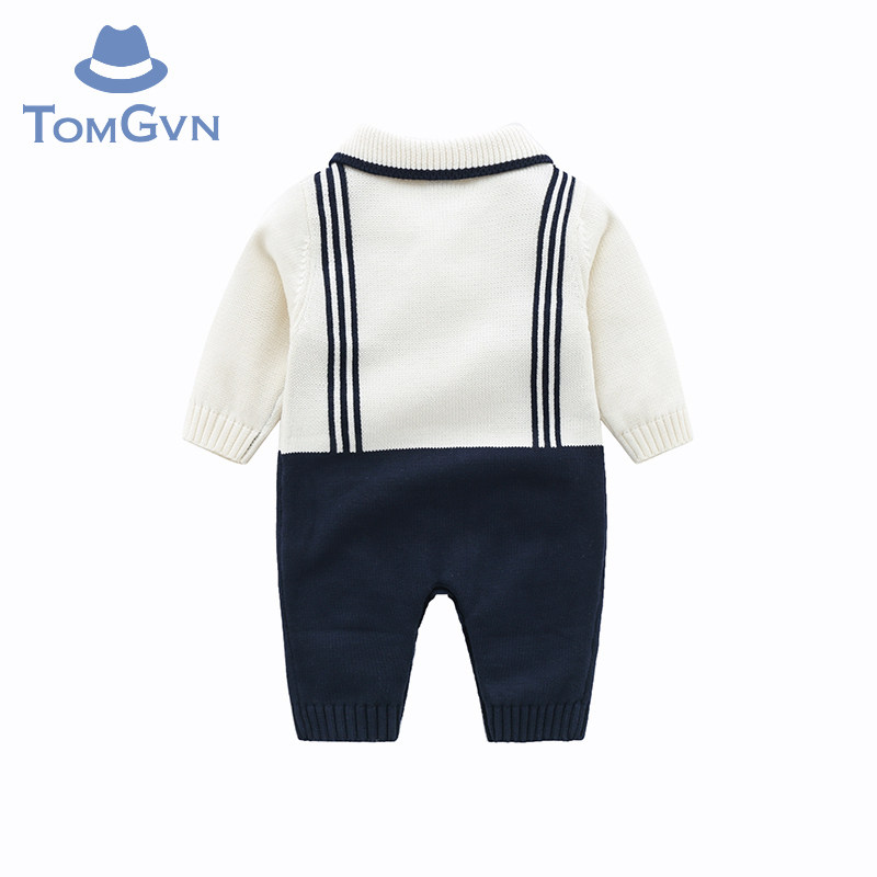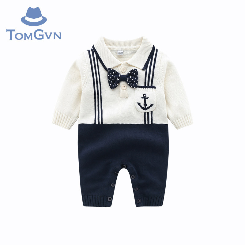 Tommy Gavin baby autumn clothes jumpsuit boy baby knitted sweater gentleman striped romper romper autumn and winter