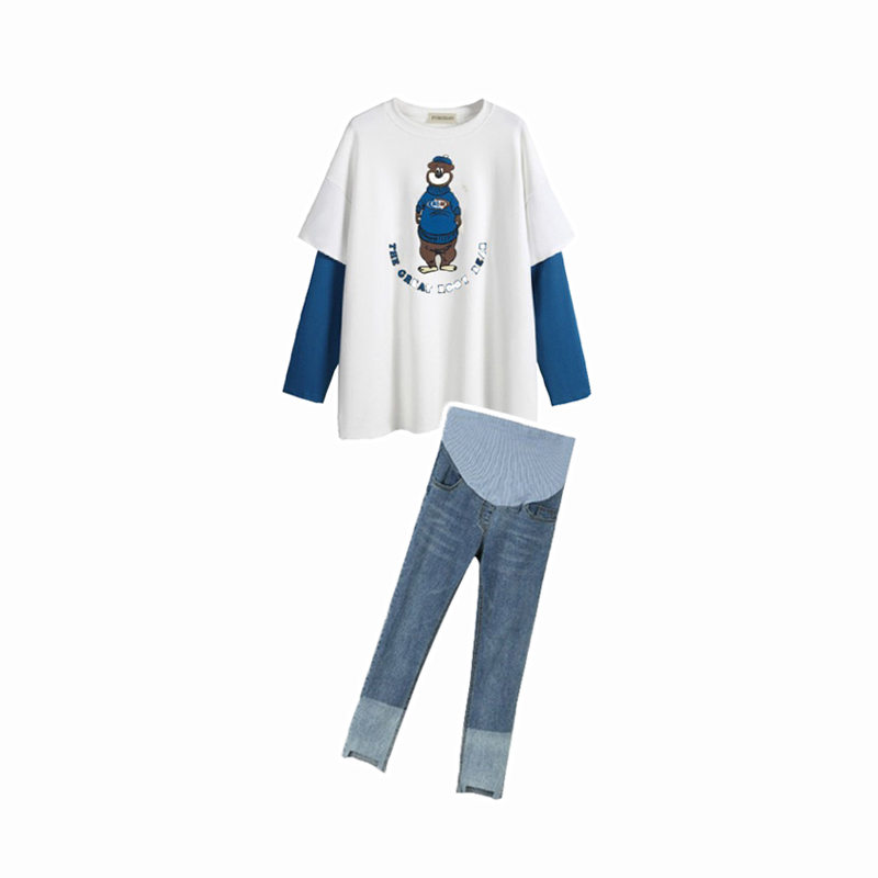 Pregnant spring net red suit fashion top out small spring and autumn New Year clothes T-shirt dress