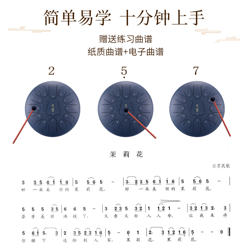 Lu Ru ethereal drum beginner musical instrument professional grade steel tongue drum 13 tone 15 tone Lotus drum color hollow drum children