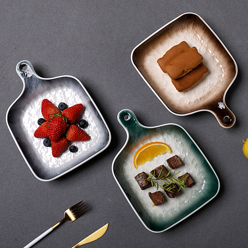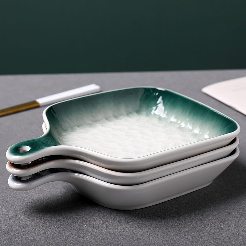 Creative ceramic single handle square baking plate cheese baked rice plate household rectangular plate microwave oven special