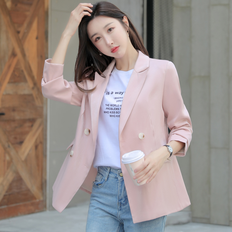 Pink small suit jacket female spring and autumn Korean version 2023 new design sense niche small casual suit suit