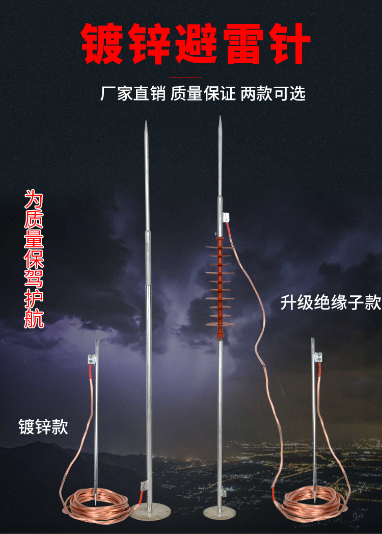 Zinc-plated lightning rod for home lightning protection grounding wire needle building top outdoor engineering insulator lightning protection device manufacturer direct
