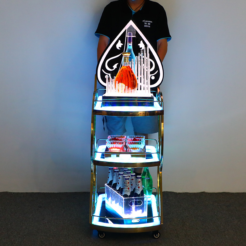 Bar glow trolley night show KTV three-story wine delivery truck mobile foreign liquor car LED trolley