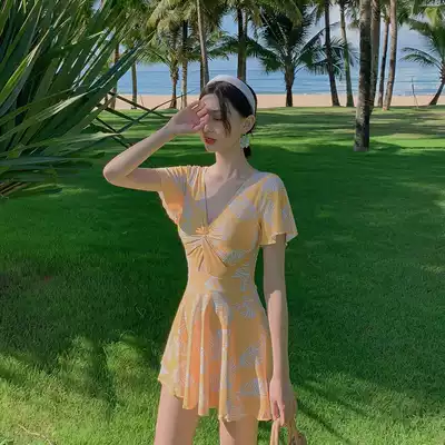 Yellow-one-piece safety pants (covering the belly and thin for photo) yellow-safety pants separate swimsuit mobile phone waterproof bag swimsuit gathering chest pad B cup swimsuit gathering chest pad B cup swimsuit