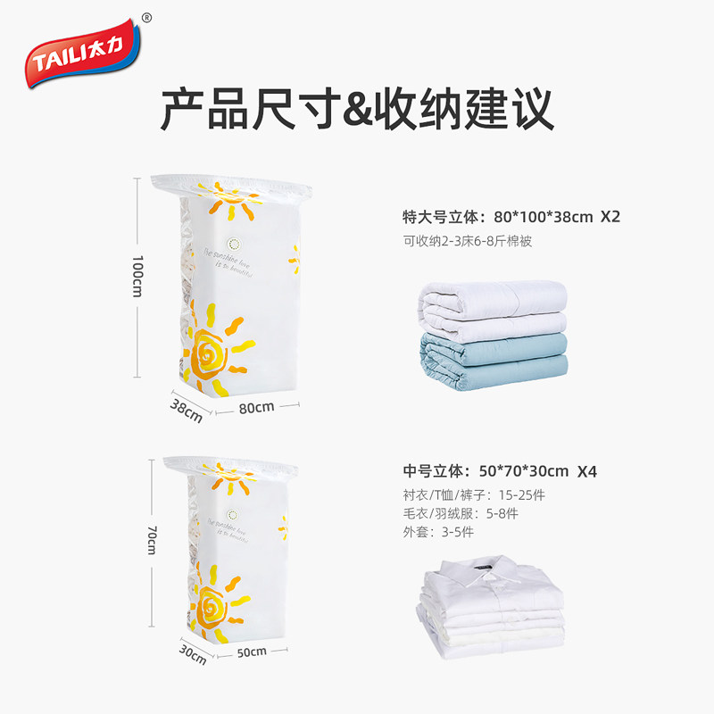 Tai Li vacuum compression bag free suction three-dimensional extra-large vacuum storage quilt clothing finishing bag 6-piece set
