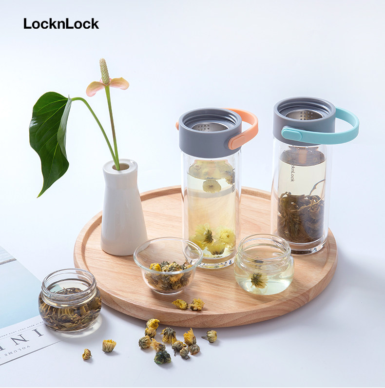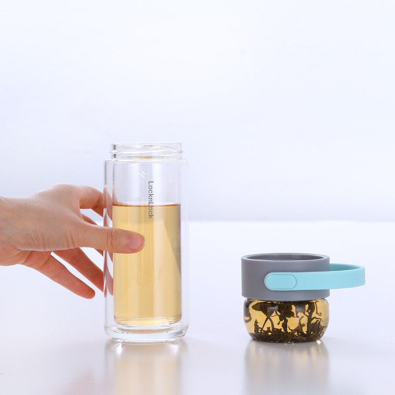Lock and lock glass tea cup tea water separation cup tea cup portable double-layer large-capacity filter heat-resistant water cup