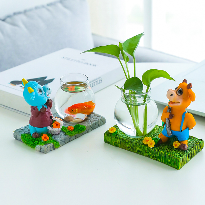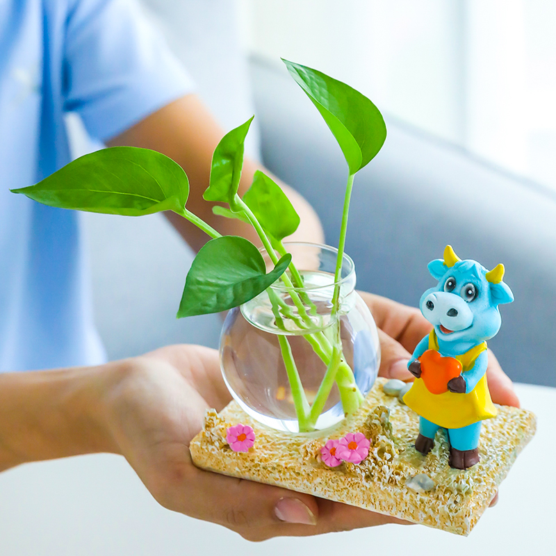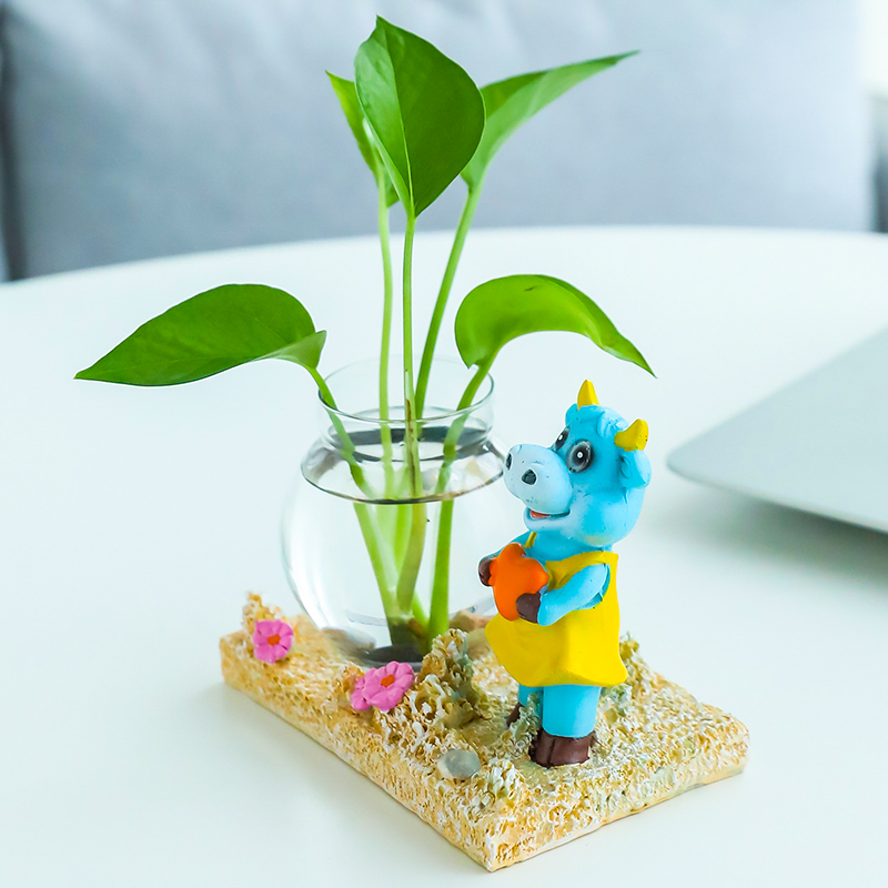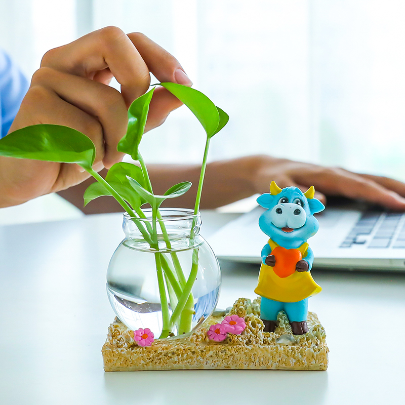 Creative Gold Ge Hydropware Plant Glass Transparent Vase Flower Arrangement Water Pepe Flower Pot Table Living Room Small Bull Swing Piece