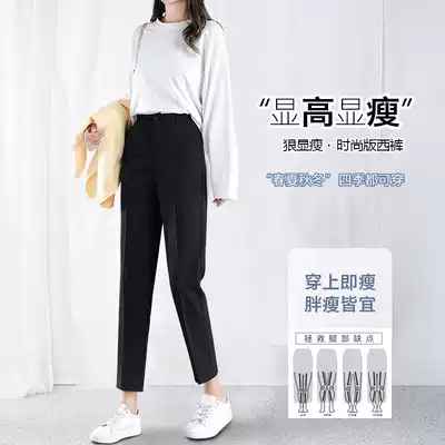 Small feet suit pants women high waist thin 2021 autumn new nine-point loose straight tube black work pants women