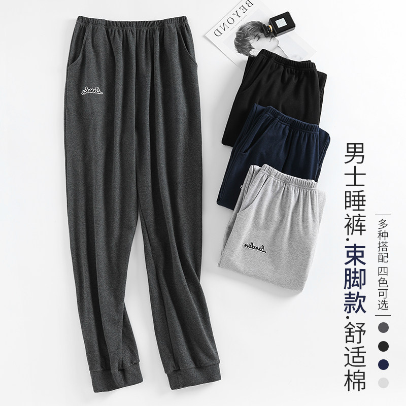 Casual All-cotton Sleeping Pants Male Long Pants Spring Summer Fall Loose Elastic Thin and pure cotton large size size can be worn outside the home pants men