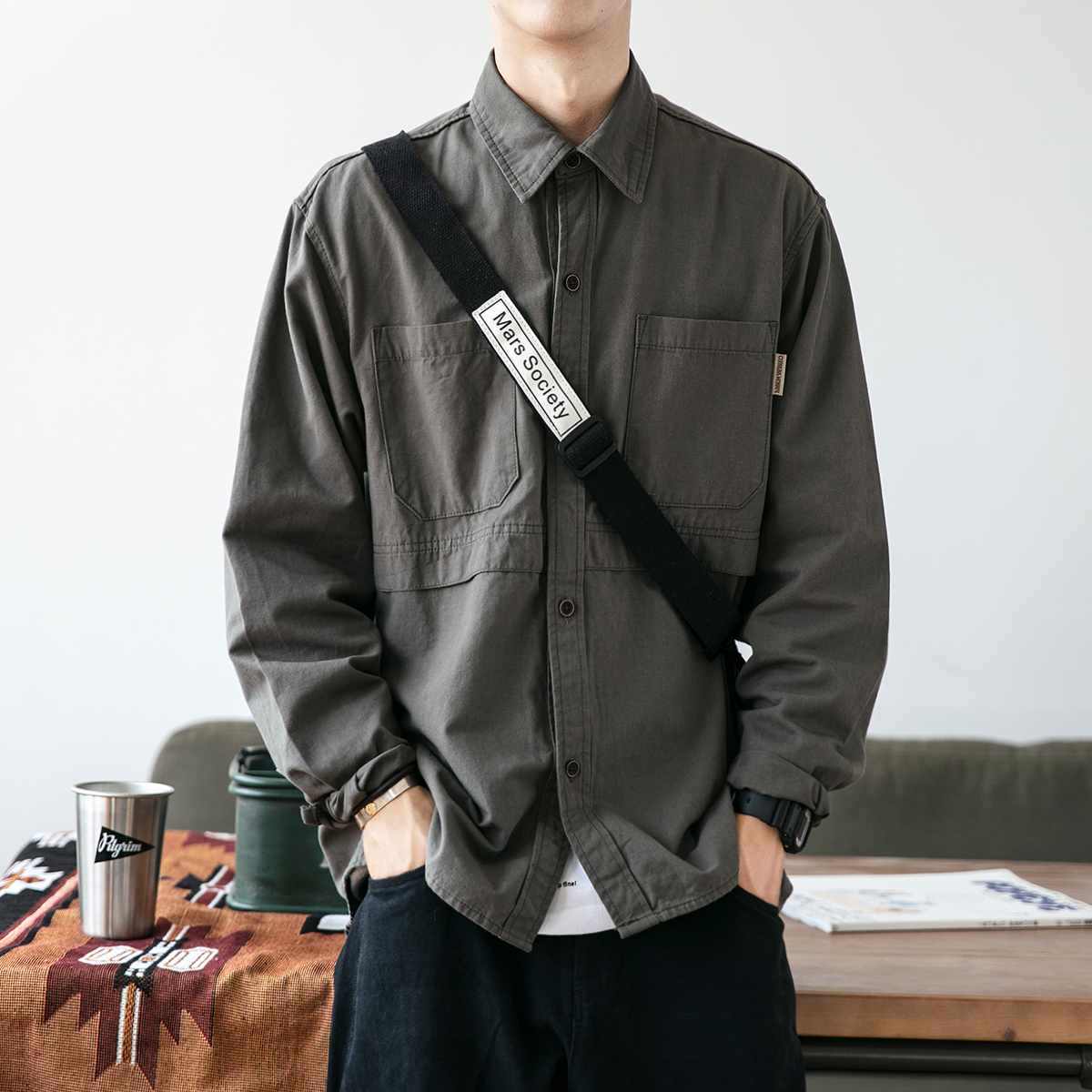 Spring and Autumn 2022 New Overalls Shirt Men's Long Sleeve Korean Edition Trend Loose Pocket Shirt Casual Versatile Jacket