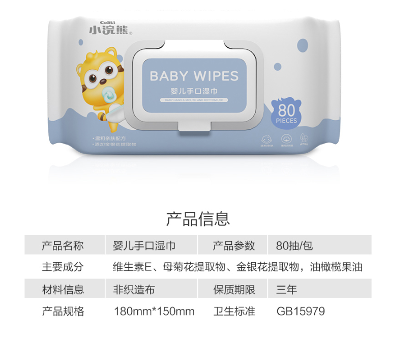 Little raccoon baby hand mouth wipes with lid 80 draw 5 pack baby children disposable cleaning ass wet wipes