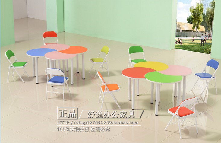 Petal combination group activity counseling table training school colorful color teaching desks and chairs library reading table