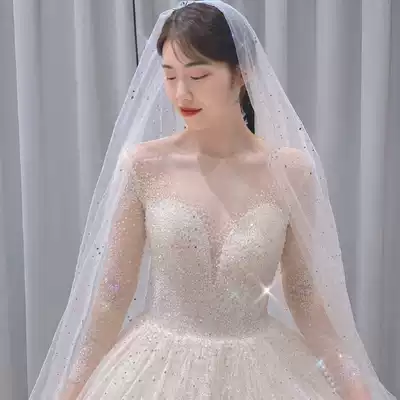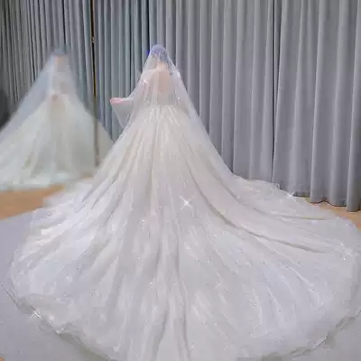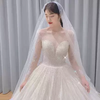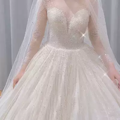 French super fairy light main wedding dress 2021 bride new long-sleeved heavy industry thin big tail dream forest Qi Di female